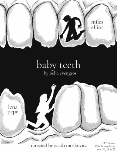 BABY TEETH is a raw, surreal one-act play about shame, God, and two messed-up kids stealing teeth from a dentist’s office in nowhere, Pennsylvania. Gritty, strange, and full of heart.
